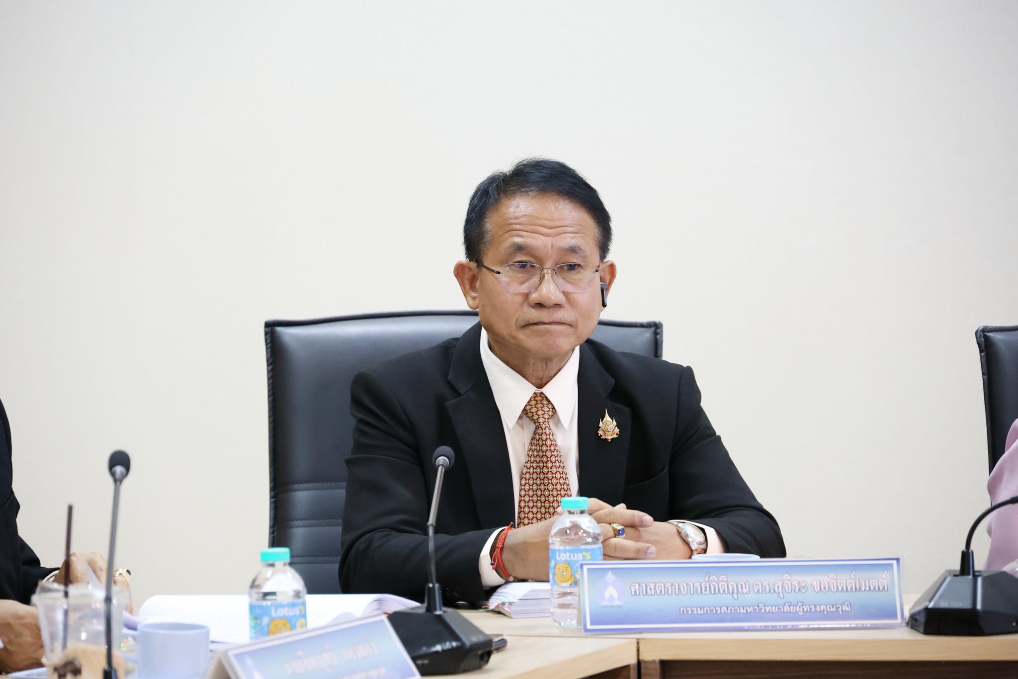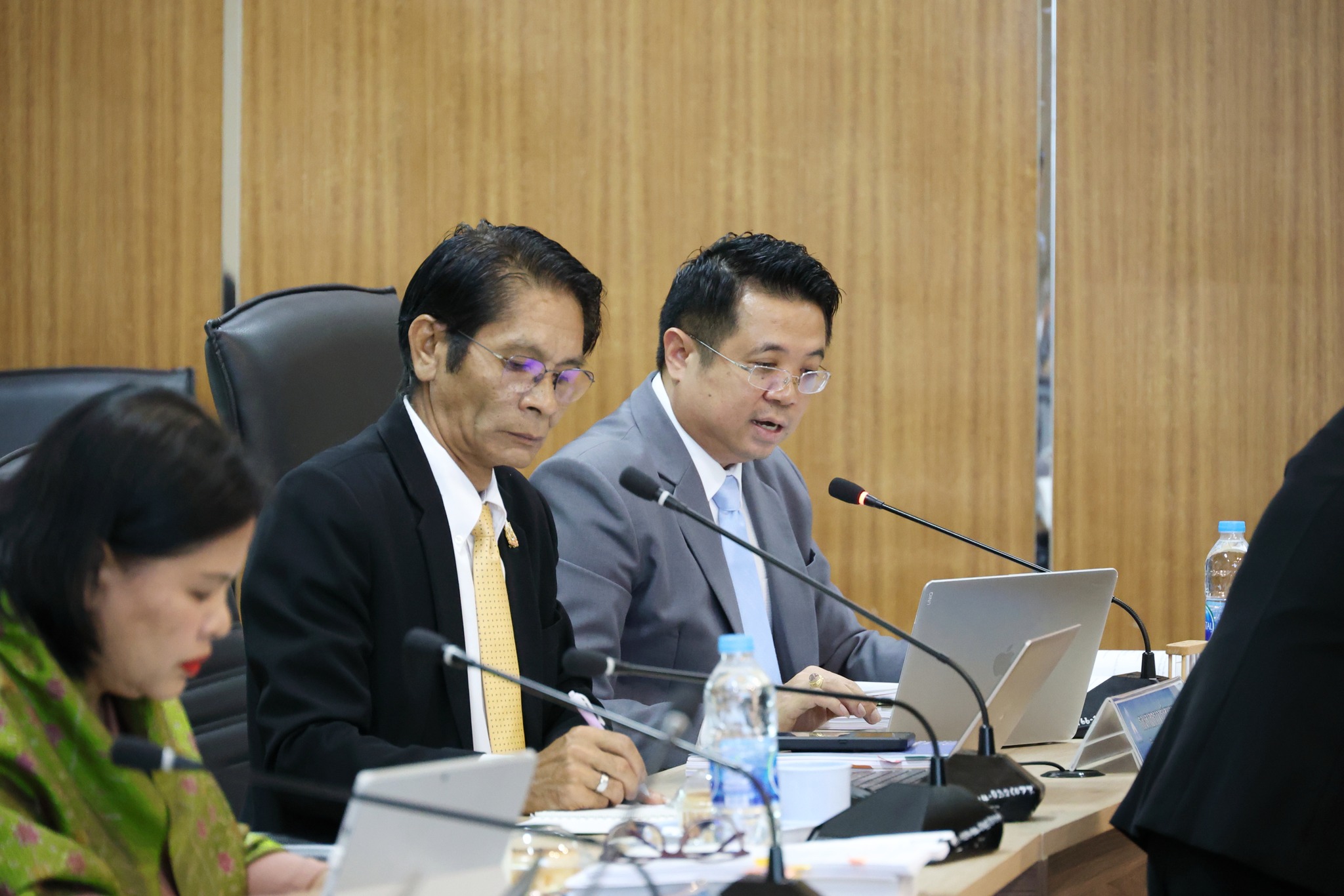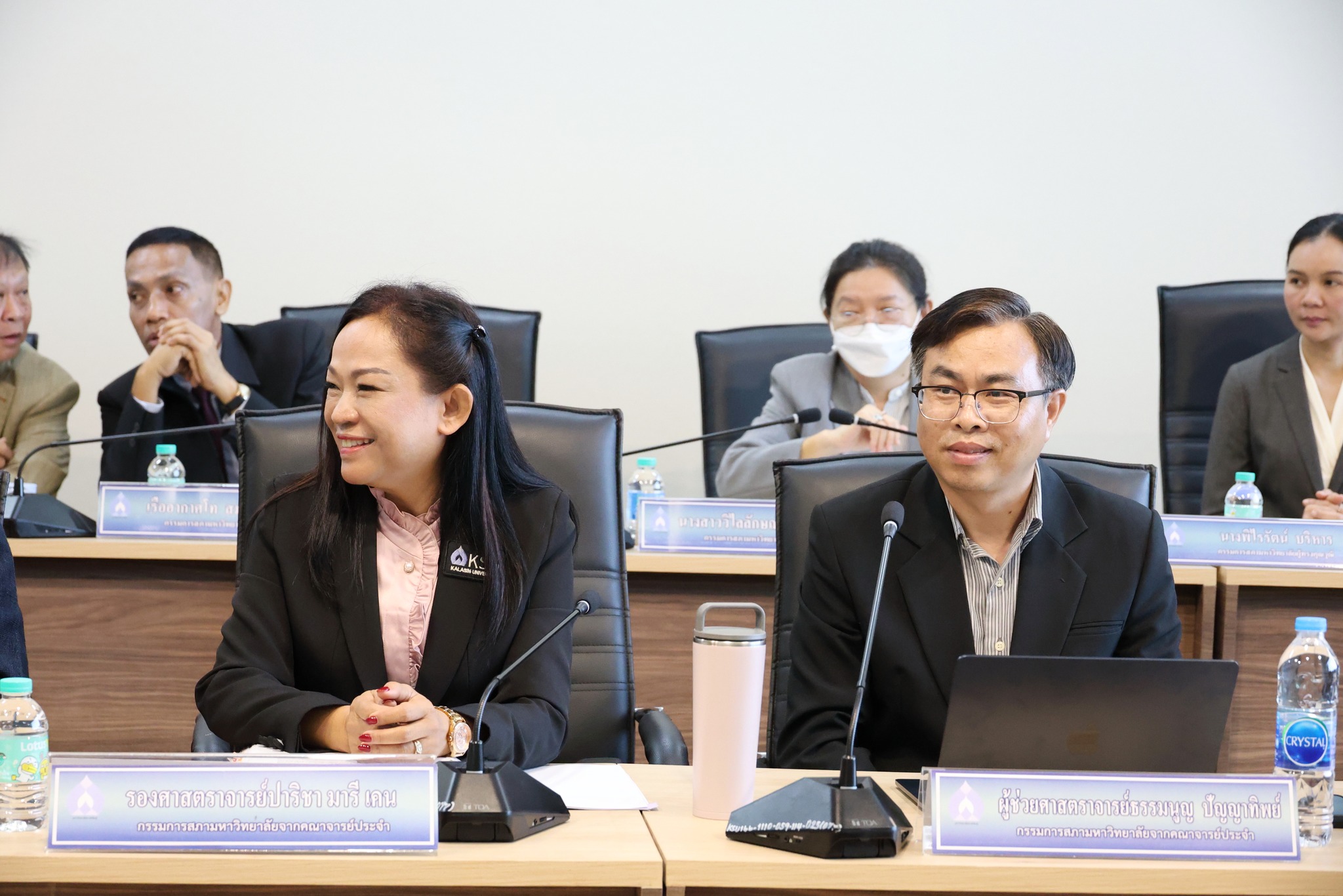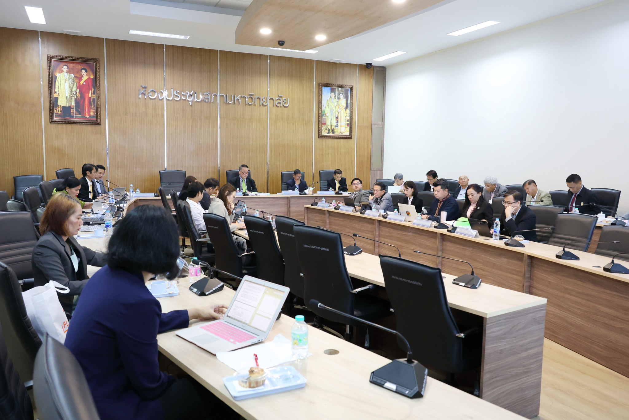 ซึ่งในการประชุมครั้งนี้ ได้มีมติในเรื่องสำคัญ ดังนี้ 1) กล่าวต้อนรับ และแสดงความยินดีกับกรรมการสภามหาวิทยาลัยจากคณาจารย์ประจำ และกรรมการสภามหาวิทยาลัยจากข้าราชการและพนักงานในสถาบันอุดมศึกษาที่มิใช่คณาจารย์ประจำ 2) พิจารณาระเบียบมหาวิทยาลัยกาฬสินธุ์ ว่าด้วย การยกเว้นค่าธรรมเนียมการศึกษาสำหรับอาจารย์ เพื่อศึกษาในหลักสูตรประกาศนียบัตรบัณฑิตชั้นสูง สาขาวิชานวตกรรมการจัดการเรียนรู้ (หลักสูตรใหม่ พ.ศ. 2568) มหาวิทยาลัยกาฬสินธุ์ พ.ศ. 2568 3) พิจารณาประกาศมหาวิทยาลัยกาฬสินธุ์ เรื่อง อัตราการเก็บค่าธรรมเนียมการศึกษาของนักศึกษาระดับประกาศนียบัตรบัณฑิต หลักสูตรประกาศนียบัตรบัณฑิต สาขาวิชานวัตกรรมการจัดการเรียนรู้ ภาคพิเศษ 4) มหาวิทยาลัยกาฬสินธุ์ เรื่อง อัตราการเก็บค่าธรรมเนียมการศึกษาของนักศึกษาระดับประกาศนียบัตรบัณฑิตชั้นสูง หลักสูตรประกาศนียบัตรบัณฑิตชั้นสูง สาขาวิชานวัตกรรมการจัดการเรียนรู้ ภาคพิเศษ 5) พิจารณาประกาศมหาวิทยาลัยกาฬสินธุ์ เรื่อง หลักเกณฑ์การเบิกจ่ายเงินเพื่อการจัดการศึกษา ระดับประกาศนียบัตรบัณฑิต ภาคพิเศษ 6) พิจารณาประกาศมหาวิทยาลัยกาฬสินธุ์ เรื่อง เกณฑ์การเบิกจ่ายเงินเพื่อการจัดการศึกษา ระดับประกาศนียบัตรบัณฑิตชั้นสูง ภาคพิเศษ 7) พิจารณาประกาศมหาวิทยาลัยกาฬสินธุ์ เรื่อง กำหนด ค่าธรรมเนียมการพัฒนาทักษะภาษาอังกฤษของนักศึกษา สำหรับนักศึกษาระดับปริญญาตรีและระดับประกาศนียบัตรขั้นสูง (ปวส.) พิจารณาประกาศคณะกรรมการประเมินผลการปฏิบัติหน้าที่ของคณบดีคณะเทคโนโลยีการเกษตร เรื่อง หลักเกณฑ์ วิธีการ และตัวชี้วัด การประเมินผลการปฏิบัติหน้าที่ของคณบดีคณะเทคโนโลยีการเกษตร 9) พิจารณาประกาศคณะกรรมการประเมินผลการปฏิบัติหน้าที่ของคณบดีคณะบริหารศาสตร์ เรื่อง หลักเกณฑ์ วิธีการ และตัวชี้วัด การประเมินผลการปฏิบัติหน้าที่ของคณบดีคณะบริหารศาสตร์ 10) พิจารณาประกาศคณะกรรมการประเมินผลการปฏิบัติหน้าที่ของคณบดีคณะศิลปศาสตร์ เรื่อง หลักเกณฑ์ วิธีการ และตัวชี้วัด การประเมินผลการปฏิบัติหน้าที่ของคณบดีคณะศิลปศาสตร์